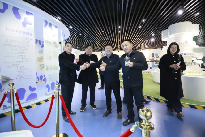 2025年2月14日,河南日報政法新聞部黨支部書記、主任朱殿勇,中國收藏家協會書報刊委員會副主任楊翔飛等一行到河南花花牛乳業集團,開展以“黨建引領聚合力 篤行不怠開新局”為主題的基層黨支部聯合主題黨日活動,聚焦新時代國有企業黨建創新實踐與紅色文化傳承深度融合課題,探索媒體、學術機構與企業協同賦能的新范式。花花牛乳業集團黨委副書記、紀委書記、工會主席周付產等領導陪同參觀座談。